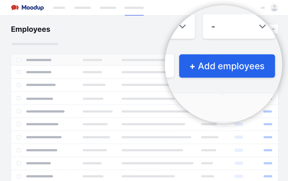 Du tilføjer medarbejdere til undersøgelser i instrumentbrættet, uploader en Excel-fil eller forbinder Moodup til dit løn- eller HR-system.